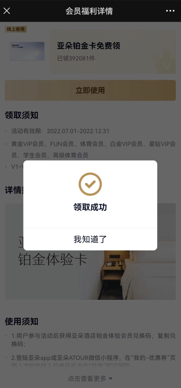 免费领亚朵铂金卡