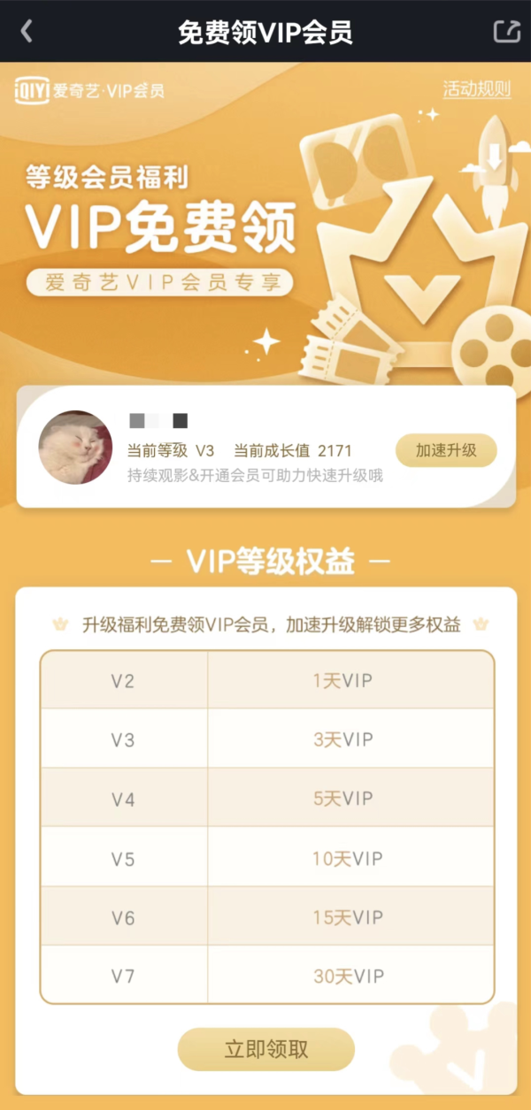 爱奇艺VIP会员专享,根据会员等级不同,可领取的VIP天数不同,又爱奇艺会员的值友可以领一下~